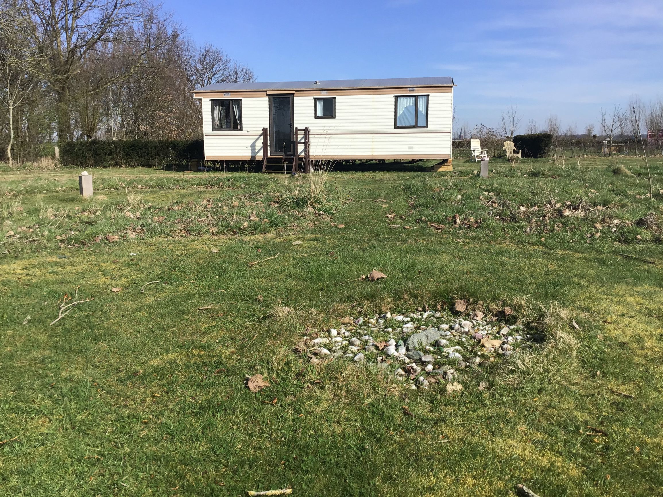 3 pers. Stacarvan. Geheel vrij in de natuur. Weids vrij uitzicht. Zwemvijver, vuurplaats en eigen veranda!! Grote koelkast, compl. Inboedel. 2 pers. +1 Bed en 2 pers. Slaapbank. Je kan ook een tentje neerzetten bij de stacaravan! Stroom, water. Eigen chem. Toilet. Douchen in de openb. Toilet ruimte.