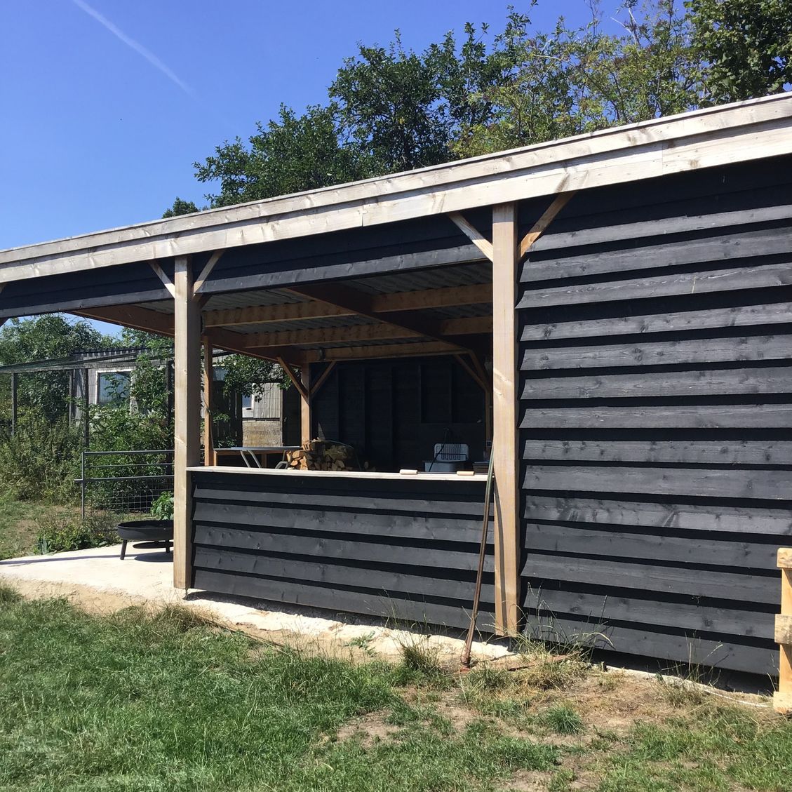 Er is een grote geheel overdekte wagenloods/veranda met buitenkeuken tot je beschikking met mogelijkheid om de potkachel of de vuurschaal te gebruiken! Een echte pizzaoven om heerlijk eigen gemaakte pizza’s te maken. Gezellig, Lekker en goedkoop. Tevens is er een grote koelkast en een grote 6 pits gasfornuis met grote oven en BBQ. De overdekte wagenloods is 80m2 met picknick tafels etc. Deze overdekte ruimte is naast de studios gelegen! Het is geen feestzaal voor bandjes en partijen. Muziek op normaal niveau om geen overlast te veroorzaken.
